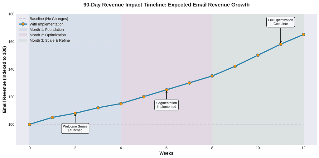 The 90-day roadmap above is your playbook. Follow it sequentially, measure your progress monthly, and adjust based on your specific results. Within three months, you’ll have transformed email from a promotional channel into your highest-ROI revenue driver.