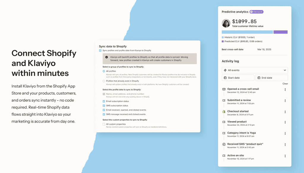 Klaviyo: Best if you want your email and SMS to play nice together. You can make sure you’re not annoying someone with the same promotion on both channels at once. The unified customer profiles are chef’s kiss.