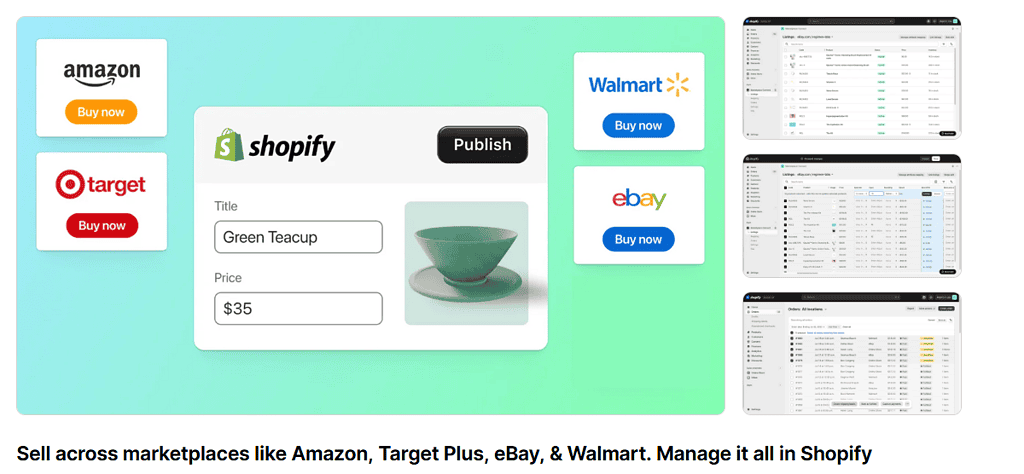 - Manage Amazon listings, orders, and inventory directly in Shopify